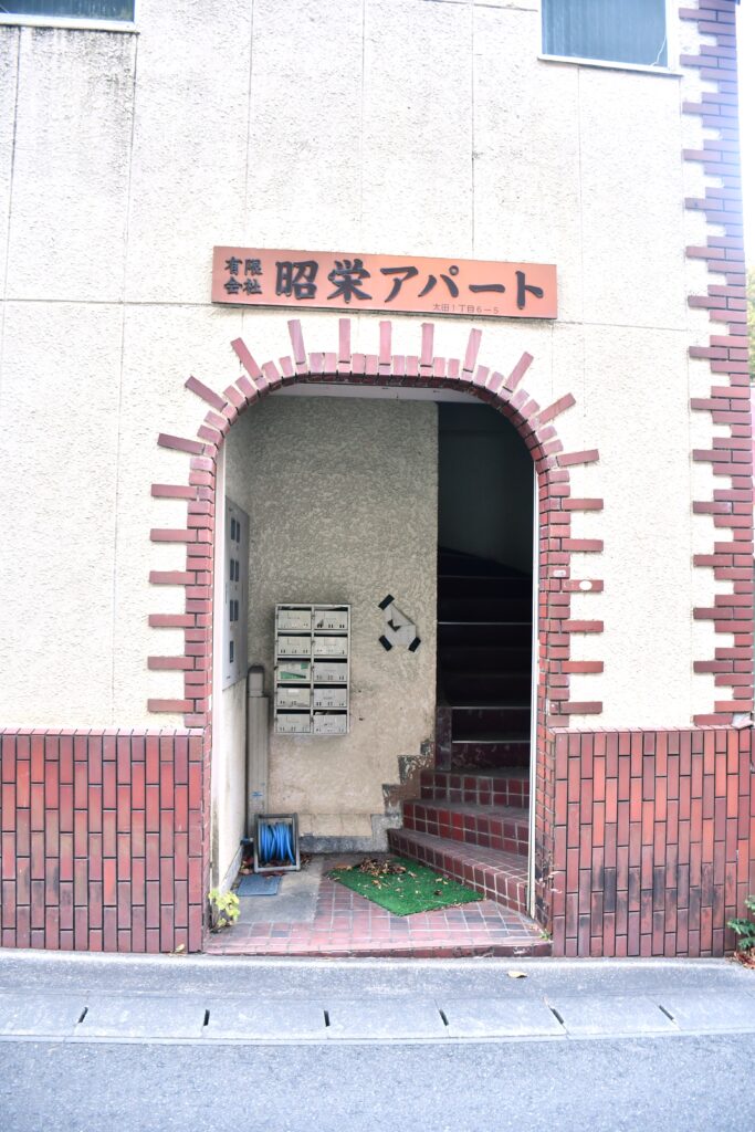 昭栄アパート。こちらもレトロなデザインの入口。
