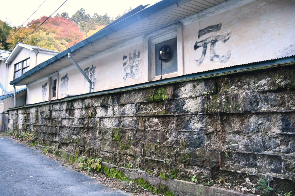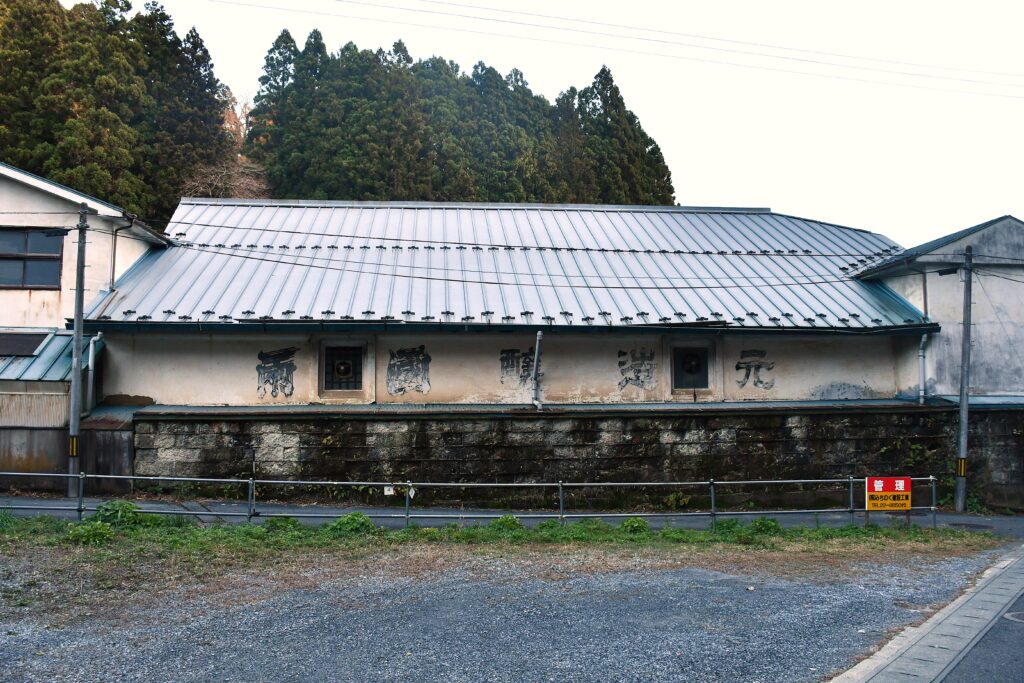 空き家の列を抜けると、群を抜いて古そうな建物がみえてきた。読みにくいが、壁面の文字は旧字体で「両国醸造元」と書かれているようだ。