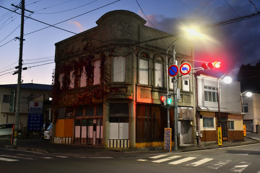 気仙沼の中心部(気仙沼街道沿い)にも、古い建物は多い。すでに日が暮れていたなかでの撮影だったが、気仙沼中心部にも寄ってみた。