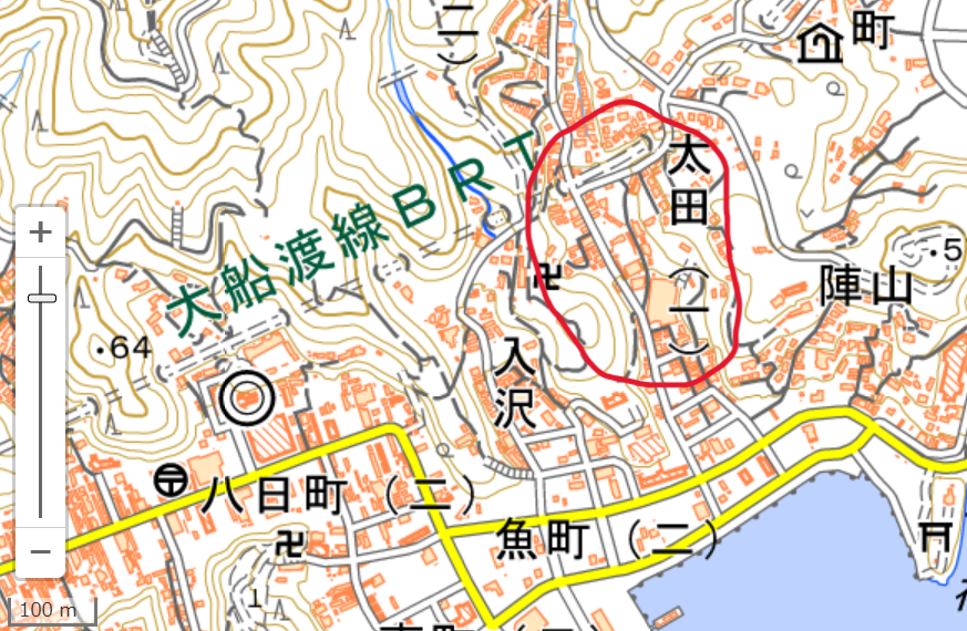 この地域は、港からほど近い太田と呼ばれる地区で、沢地形沿いに民家や建物が密集している。この中に、今回の目的地である廃墟があるらしい。